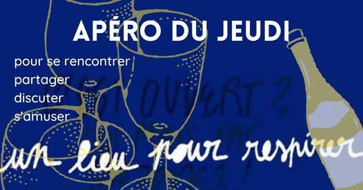 Venez, c'est sympa ! L’apéro du jeudi, c'est l’occasion de se rencontrer, de se retrouver, d’imaginer ensemble des choses en lien avec un lieu pour respirer (ou pas), de refaire le monde et aussi de soutenir le lieu en buvant des coups !
