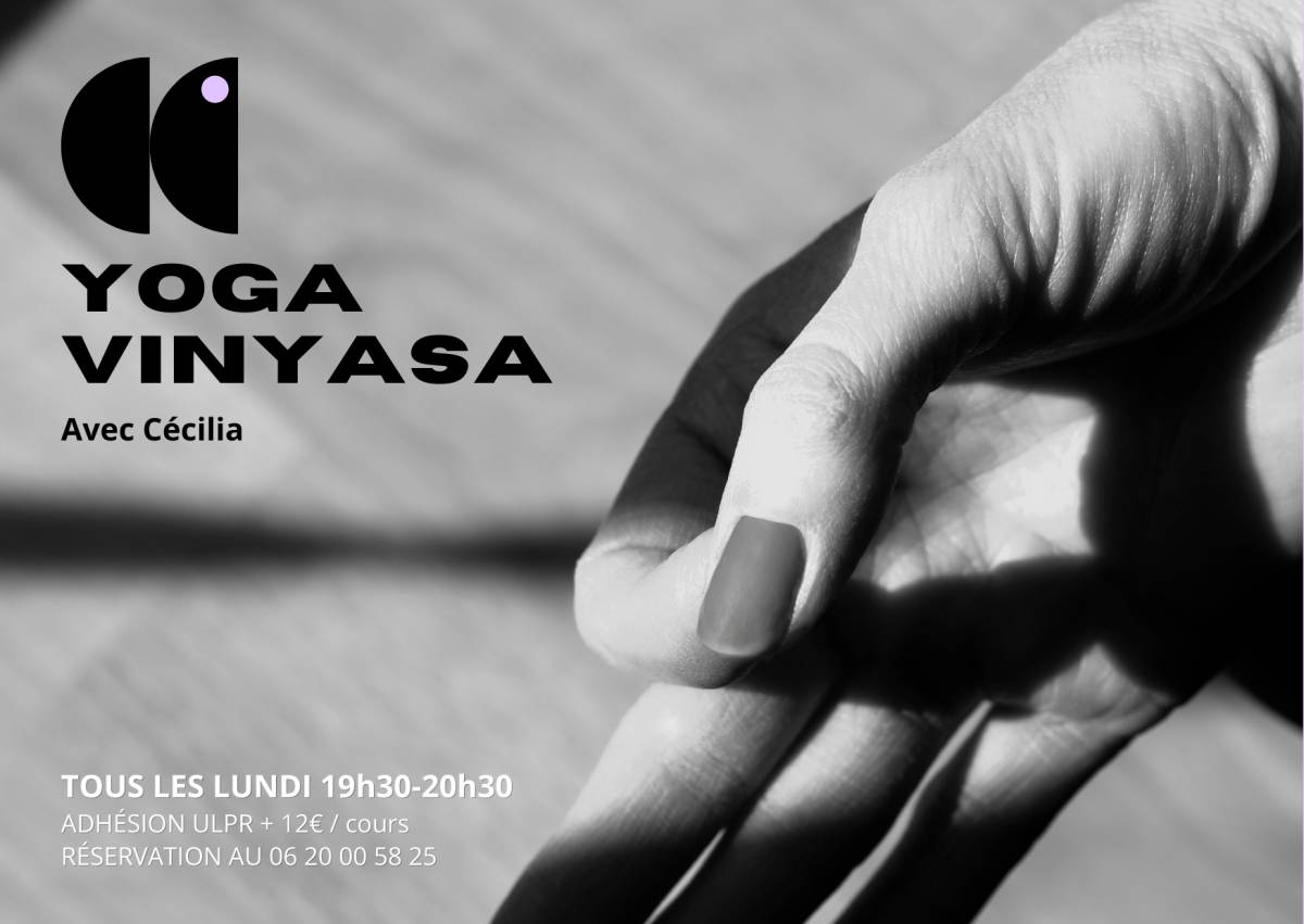 YOGA VINYASA DU LUNDI AVEC CÉCILIA Tous les lundi de 19h30 à 20h30 (sauf jours fériés)