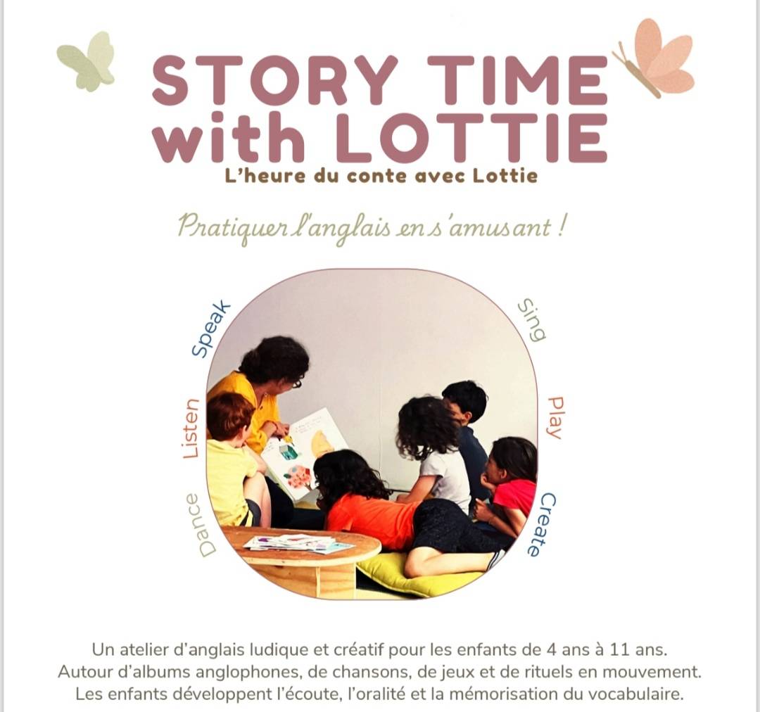 Sur inscription obligatoire (7 places par atelier) par mail à storytimewithlottie@pm.me ou par SMS au 06 38 58 32 56