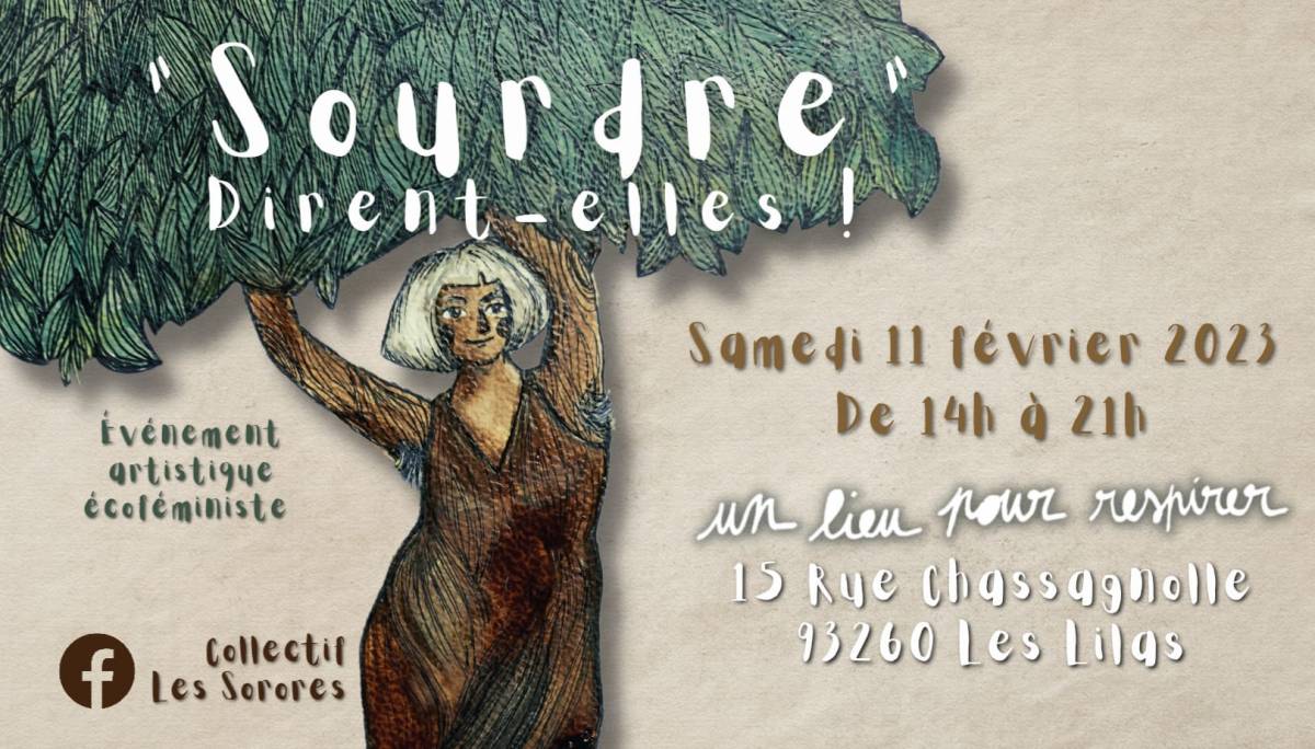 Le collectif Les Sorores organise un événement artistique et écoféministe. "'Sourdre" dirent-elles: écologie et féminisme". Programme : Accrochage des œuvres plastiques du collectif Les Sorores : Lolaura, Amande Art, Sandrine Lehagre, Celien MTF, Séverine Hettinger, Rosa Gonzalez. Artistes invitées : Zazie La vraie, Laurence Such, Juana Sabina 14H : lecture de textes (programmation à venir) 15H : Présentation d’Ana Minski de son livre écoféministe « Sagesses incivilisées », publié chez M Editeur. 16H : Théâtre d’images pour les enfants animé par Amande Art. 16H30 : Projection vidéo Femmes, féminisme et écologie.